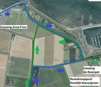 Ingang vanaf Blauwe route: vanaf de Noordstraat rijd je met de klok mee om uit te komen bij de trap aan de Stekeldijk. Ga daarna naar 's Heer Janszdorp om de Blauwe route verder te volgen.