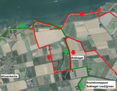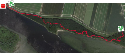 Ingang: na de oprit op de dijk. Route komt vanaf de dreef van de Willem Adriaanweg. Uitgang bij fietspad langs het Veerse Meer (Westbermweg).