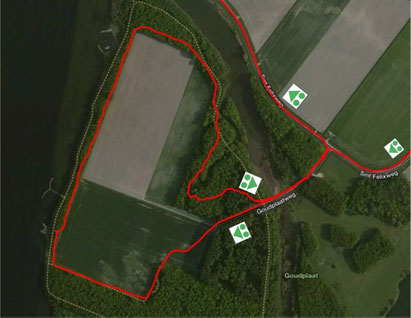Ingang: bij de Goudplaatweg komend vanaf de Sint Felixweg. Links aanhouden, route met de klok meerijden. Uitgang via dezelfde Goudplaatweg en daarna Sint Felixweg naar Kamperland voor vervolg Groene Route.